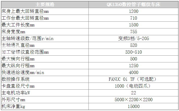 QK1350型數控管螺紋車床是針對石油、化工、冶金行業(yè)輸油管、鉆桿、套管的螺紋加工要求專業(yè)化設計制造。機床采用雙卡盤夾緊方式,數控系統(tǒng)自動控制,可******加工各種內、外螺紋,并具有普通數控車床的功能。