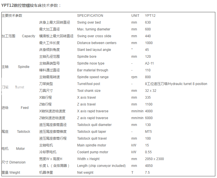 山東沂水機床廠斜床身管螺紋車床加工范圍:主軸通孔120-300mm,加工長度1000-15000mm.機床型號:YPT12斜床身管螺紋車床,YPT15斜床身管螺紋車床,YPT19斜床身管螺紋車床,YPT22斜床身管螺紋車床,YPT25斜床身管螺紋車床,YPT27斜床身管螺紋車床,YPT30斜床身管螺紋車床.