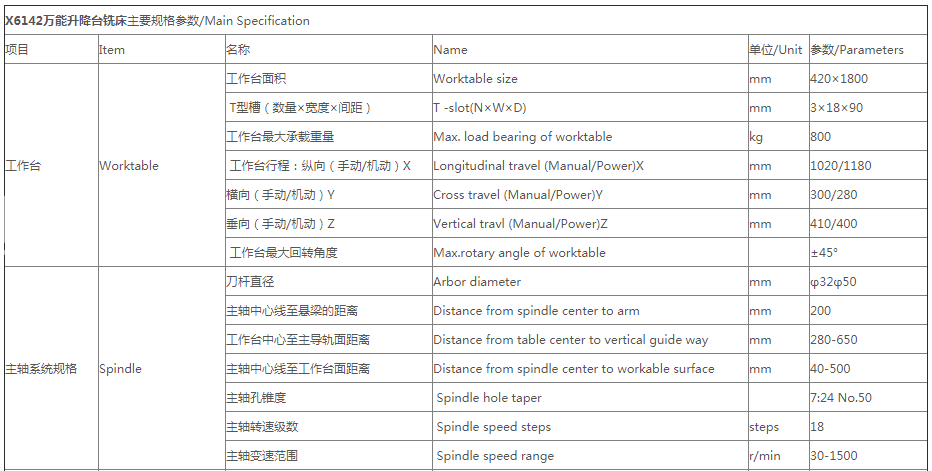 X6142******升降臺銑床是一種用途廣泛的通用機床,適宜于棒形、圓片、成形和端面銑刀,進行平面、溝槽和邊緣的加工。在本機床上安裝分度頭等附件后,還能銑切齒輪、鉸刀、螺旋槽、凸輪和鼓輪等工件,廣泛應(yīng)用于機械加工各行業(yè)。