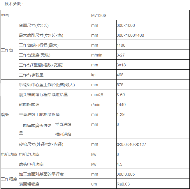 平面磨床工作臺尺寸范圍:寬度200-1000mm,長度1000-8000mm.主要型號:M7130平面磨床,M7140平面磨床,M7150平面磨床,M7163平面磨床,M7180平面磨床