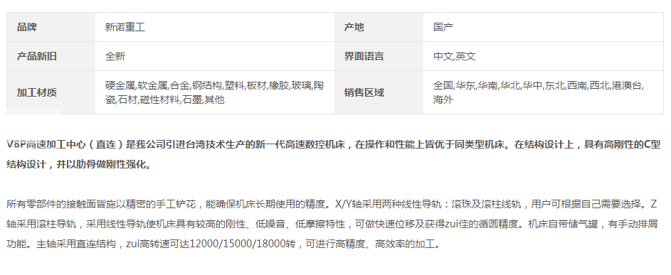 安徽新諾精工股份有限公司(原皖南機(jī)床廠)主軸直連高速加工中心系列