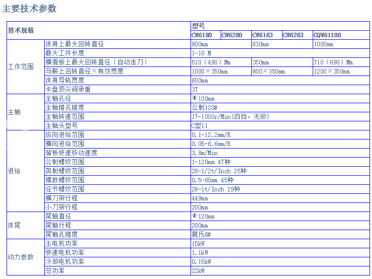 此系列普通車(chē)床導(dǎo)軌寬度600mm,型號(hào)有CW6163普通車(chē)床、CW6263馬鞍車(chē)床、CW6180普通車(chē)床、CW6280馬鞍車(chē)床、CW61100普通車(chē)床、CW62100馬鞍車(chē)床